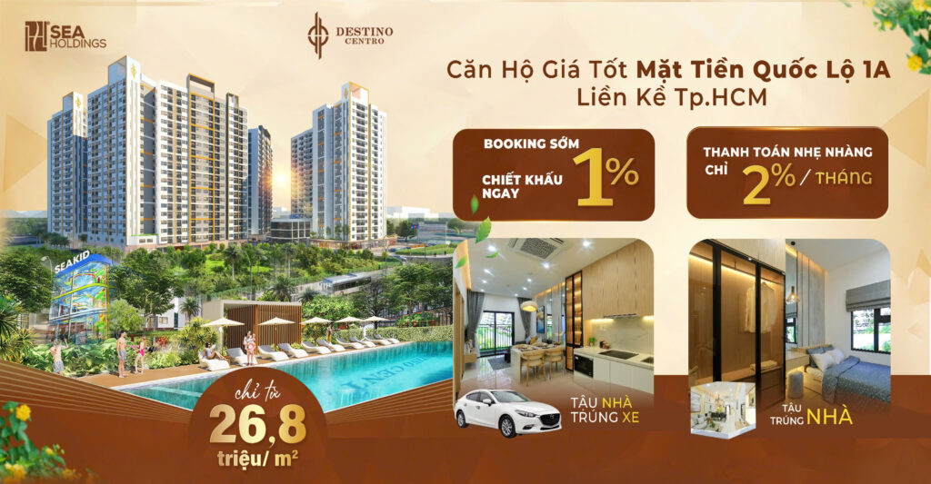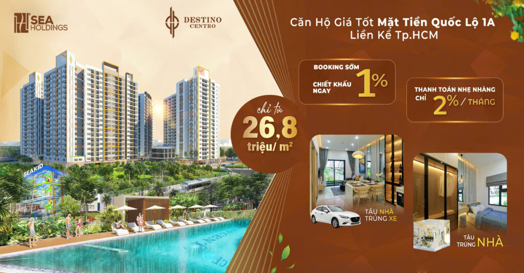 Destino Centro là dự án căn hộ hiện đại do Seaholdings đầu tư, tọa lạc tại số 54 Quốc lộ 1A, xã Mỹ Yên, huyện Bến Lức, tỉnh Long An. Với quy mô 5 tòa tháp cao 20 tầng, dự án mang đến không gian sống hiện đại, tiện nghi cho cư dân tại cửa ngõ phía Tây TP.HCM.
